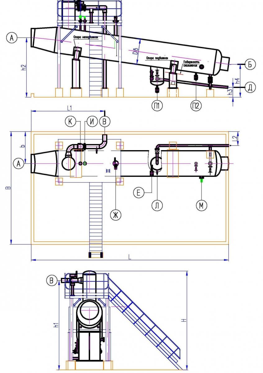 | Device code | Productivity, m3/day | Case length, mm | Calc. pressure, MPa | Dv, mm | H, mm | L, mm | V, mm | b, mm | h1, mm | h2, мм | h3, мм | h4, мм | L1, мм | L2, мм | |
