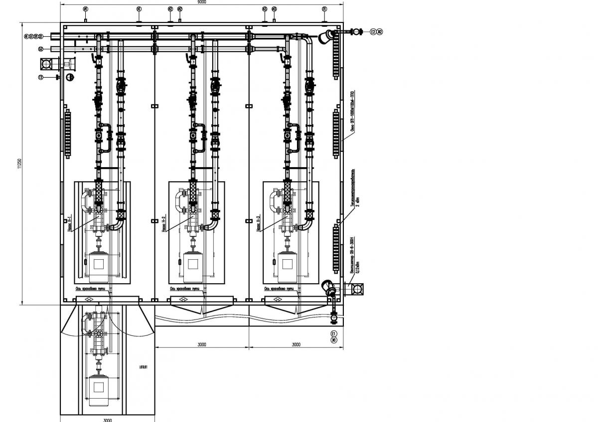 If two, three or more pumps are to be housed in modules, modules are combined into a single process building.