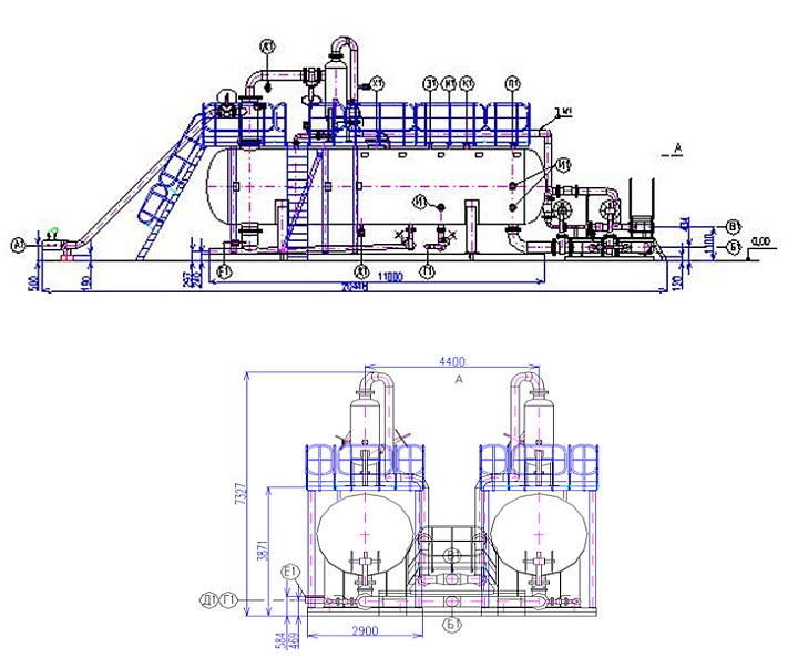 The PGPP block includes a gas separator block, with piping, with a set of shut-off and safety valves, automation and instrumentation. All equipment is placed in a heated block-box equipped with fire alarm systems, gas alarm systems, ventilation, lighting or is made in the form of an open block on a base frame.
