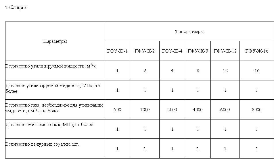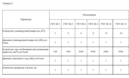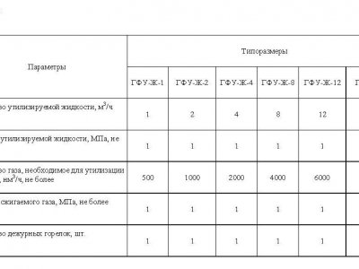 | Amount of burnt liquid hydrocarbons (oil), m3/h | 8,3 | 16,6 | 33,2 | 66,4 | 99,6 |