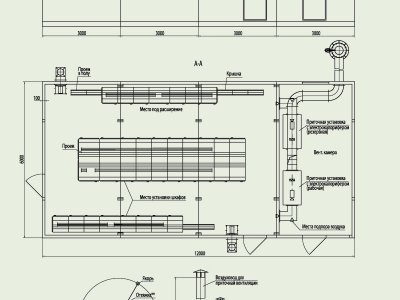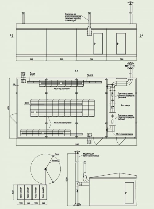 The Block of boards of control stations room is made of modules with dimensions of 6000x6000x2950 mm, 9000x3000x2950 mm, 12000x3000x2950 mm, which can be connected and completed in any way at the request of the Customer and the Designer.